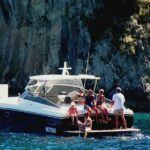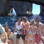 Your adventure begins at Positano’s pier, where the welcoming staff from Luxury Boats Positano will set the tone for a seamless day. The boat is a sleek, elegant vessel, well-equipped for comfort and entertainment, and the staff are praised for their professionalism and friendliness. As you depart, you’ll enjoy sweeping views of Positano’s colorful cliffs, which provide an immediate sense of the island’s breathtaking scenery.