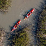 Guided by knowledgeable experts, paddlers glide past wading birds, wild dolphins, and lush oyster beds, immersed in the tranquil beauty of the barrier islands.