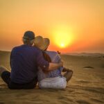 The vibrant colors of the sunset against the golden sand dunes create a mesmerizing backdrop for camel rides and dune bashing adventures. Travelers can capture the thrill and excitement as they navigate through the undulating desert terrain.