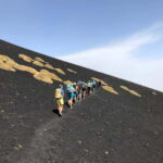 The journey continues with a 35-minute 4×4 jeep ride to the trekking point. The main highlight is a 3.5-hour hike to the Central Crater at 3300m, where they witness volcanic activity and panoramic views of Sicily and the Aeolian Islands.