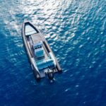 The boat, named Christina, was built in 2024 and boasts a length of 6.5 meters, a cruising speed of 25 knots, and a power of 150 hp. With a maximum capacity of 6 guests for a daily cruise, the boat comes equipped with hydraulic steering, electric anchor lift, a ladder (inox), sun canopy, USB power supply, a USB sound system, and Bluetooth.