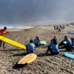 As the morning sun casts a golden glow over the horizon, a group of eager surfers gathers on the shores of Famara beach, ready to tackle the rolling waves. The rhythmic sound of the ocean sets the scene for an unforgettable experience, where beginners and seasoned riders alike come together to hone their skills in the art of surfing.