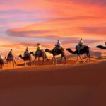 Feel the thrill of a camel ride in Merzouga as the sun dips below the horizon, painting the desert in warm hues during magical desert sunsets.
