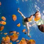 As you glide through the water, you’ll witness the beauty of coral reefs teeming with colorful fish and graceful turtles gracefully swimming by.
