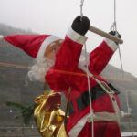 The boat itself is decorated with festive decorations, adding to the holiday spirit.