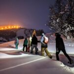 When the trail permits, you’ll be able to ski down the lake for a bit of fun, enjoying the smooth glide over the snow. As it gets darker, there’s the added bonus of using headlamps, which adds a bit of adventure and ensures safety.