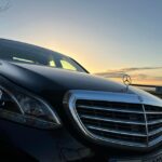 A luxury Mercedes MPV equipped with wifi, air conditioning, and refreshments.