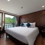Guests can unwind in the ship’s serene lounge, sipping cocktails from the well-stocked bar as they admire the breathtaking vistas of Ha Long Bay.