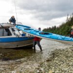 Once assembled, the group boards a boat specifically designed for whale watching, ready to embark on their Alaskan adventure along the coastline.