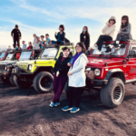 The car is equipped for a relaxing experience, allowing for easy conversation and interaction with the driver/guide.