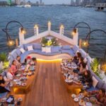Explore the captivating surroundings of Banana Island and indulge in a delicious meal at a local restaurant.