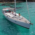 Aboard the luxurious Bavaria Cruiser 45 or 46, guests can sail across the picturesque bay, soaking up the sun and taking in the stunning coastal views.