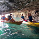 Once everyone is comfortable with the equipment and basics of kayaking, the real fun begins. The route follows the coast, with stunning views of Croatia’s rugged coastline. The highlight for many is the cave colony, home to a flock of pigeons and with a small but intriguing interior. Inside, guides like Branco often share interesting facts, making the exploration both fun and educational.