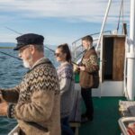 Passengers eagerly step onto the traditional wooden fishing boat, ready to embark on an unforgettable sea angling experience in Reykjavik. As they approach the vessel, they’re greeted by the friendly crew members who guide them through the boarding process.