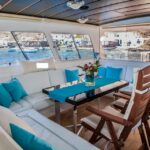 As the catamaran sails across the entire island, prepare to be captivated by the full description of this exhilarating Santorini cruise.