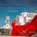 She believes the golden hour, just before sunset, captures Santorini’s ethereal beauty. The soft light bathes the iconic landscapes, creating dreamy backdrops, making every moment feel intimate and magical, perfect for unforgettable memories.
