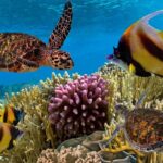 Witness the colorful coral reefs teeming with life, from tiny fish darting amongst the corals to graceful sea turtles gliding through the water.