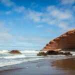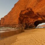 Legzira Beach, known for its stunning red stone arches sculpted by the sea, offers a picturesque setting where travelers can relax and enjoy the beauty of nature.