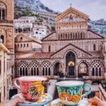 The adventure begins with a photo stop in Sorrento, where travelers savor coffee and explore scenic vistas.